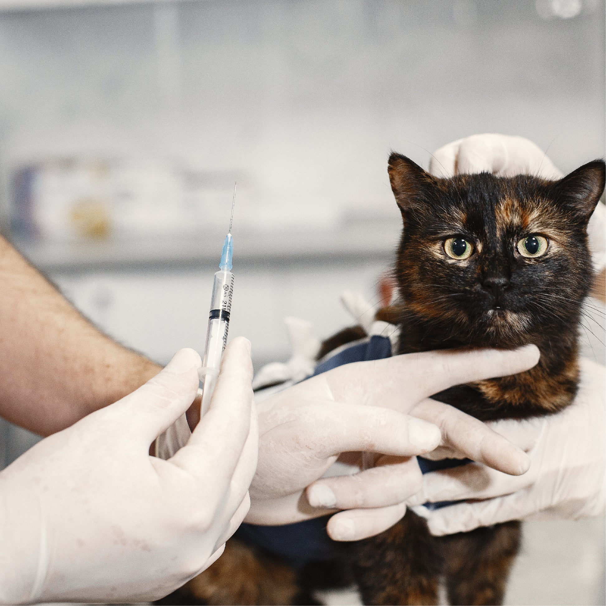 Aplicación de la vacuna triple felina (trivalente), que protege contra tres enfermedades virales altamente contagiosas y potencialmente mortales: